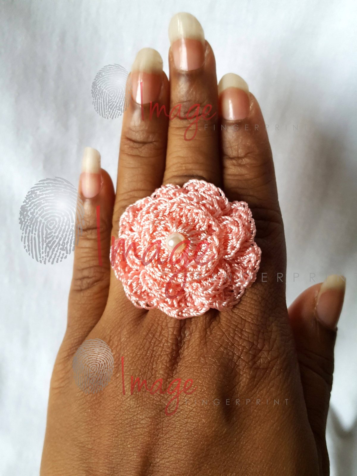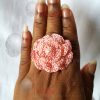 Subject: Crochet rose statement ring on hand