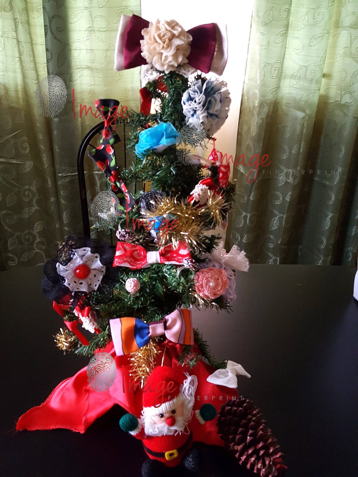 Bring the magic of handmade creativity into the holiday season with this beautifully detailed photograph of a mini Christmas tree decorated entirely with handmade craft items.